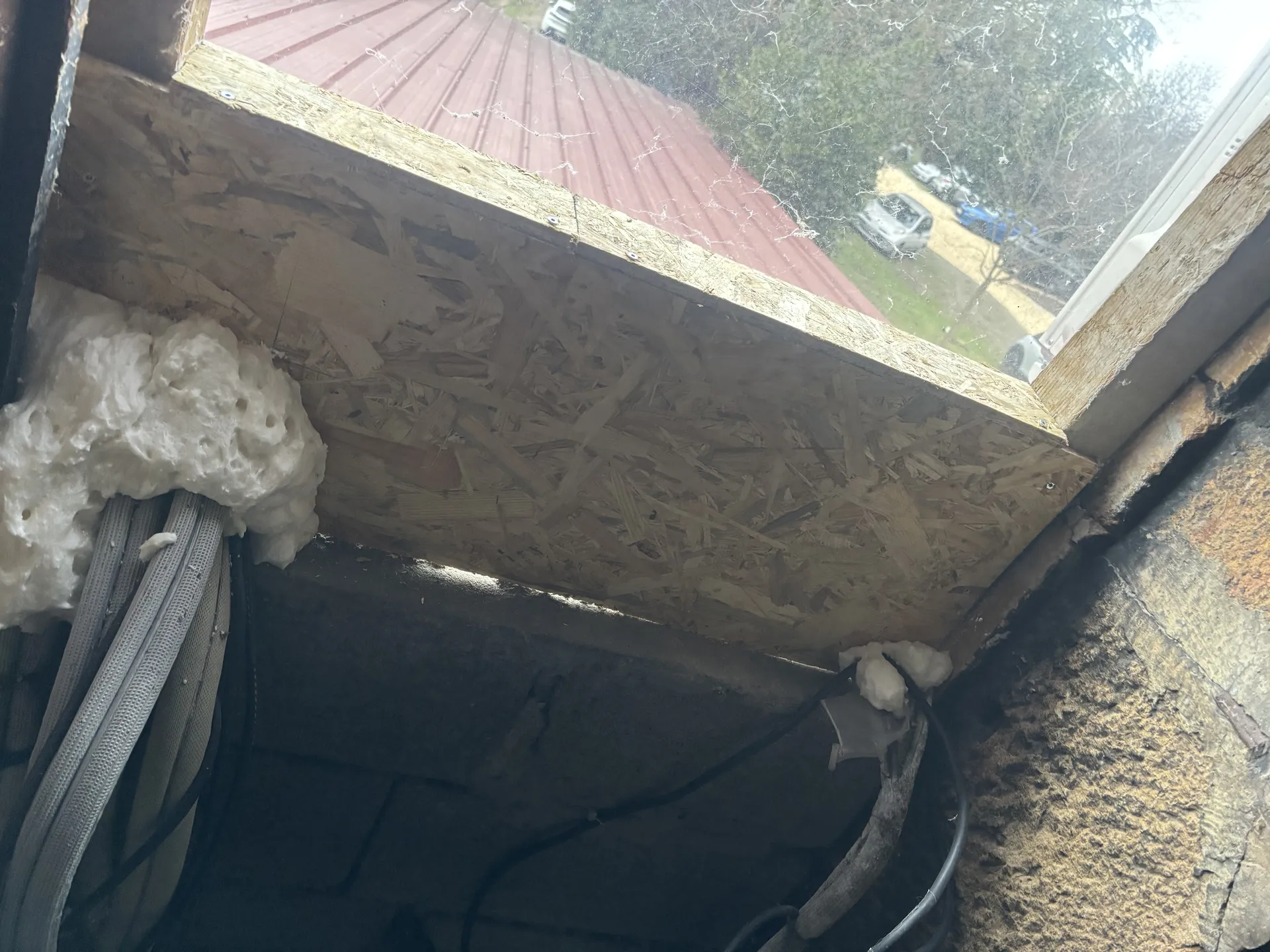 Ici, les tuyaux avaient été passés sous les montants de la fenêtre, mais aucune protection ni obturation n’avait été mise en place.